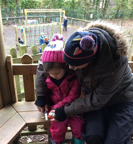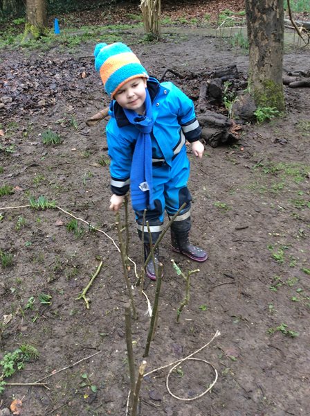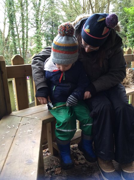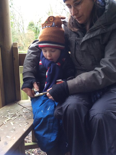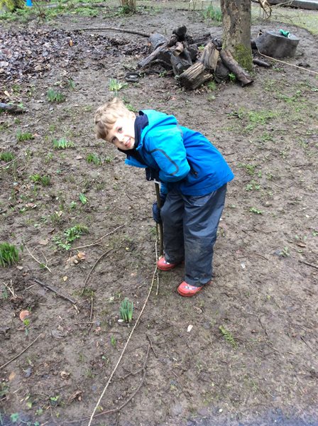 Rabbit class learn how to whittle sticks and use them to build a protective fence around our spring bulbs