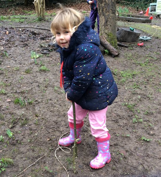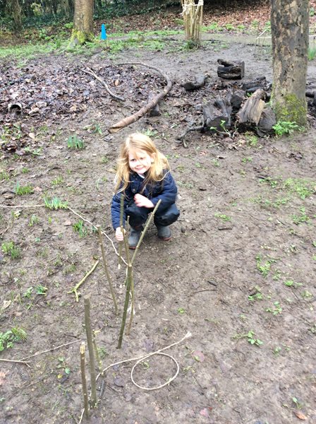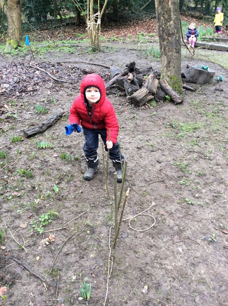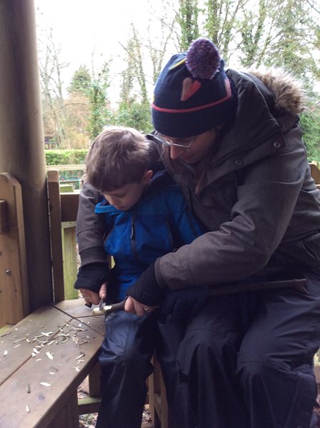 Rabbit class learn how to whittle sticks and use them to build a protective fence around our spring bulbs